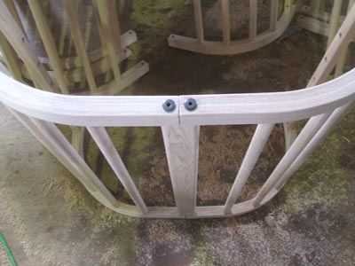 (前回は正三角形。これだと座面と背の角度が120°になり急勾配なため背もたれの後ろにスペーサーをかませて固定したが構造、見た目的に?だった。)