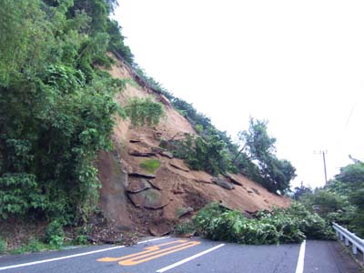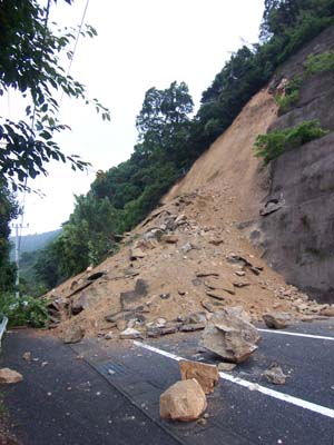 と思ったときにはその土砂が今からまさに通らんとする道路を完全に封鎖してしまった。
