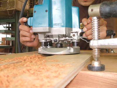 ウチでは指定がない限りビスケットジョイントを使用しています。目違い(剥ぎ合わせた板と板の段差)が非常に起こりにくく簡単で速いという理由からです。