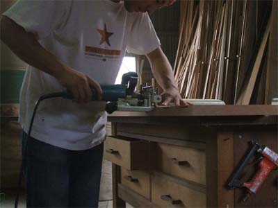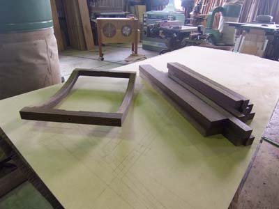 材料は黒が目を引くウェンジ。重いので骨組みを細くしたいのだが粘りが無いだけにちょっと心配。ま、「ものは試しに」的に強引に行きます。