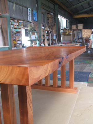 天板に脚を「吸い付き桟」でつけて反り止めを兼ねるデザインになりました。
