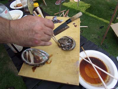チョークで剥ぎ合わせる順番を間違えないよう印をしています。