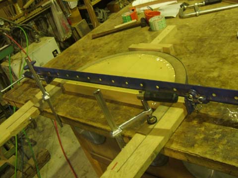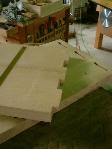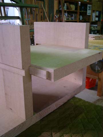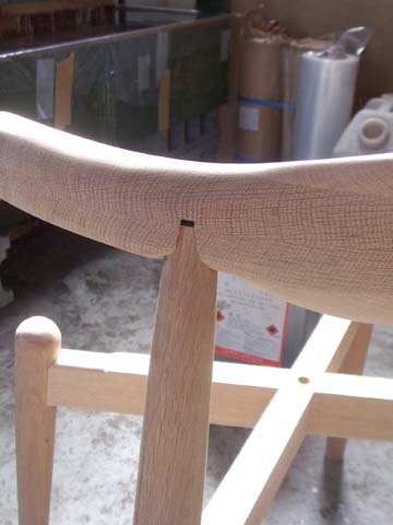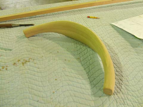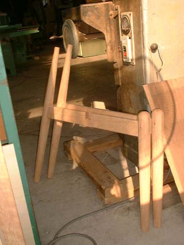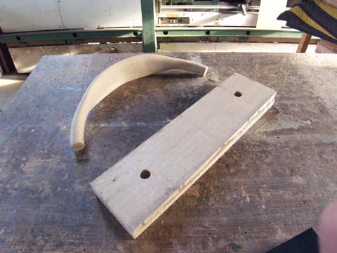 苦労したのは、曲げ材にホゾ穴(丸)を掘る。なにせ曲がってるので定規面がない。固定する治具をつくりルーターでボスッと。苦労したがその写真をとってない。ま、だいたいそんなもんです。