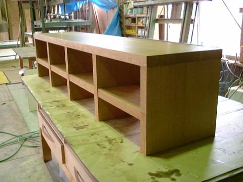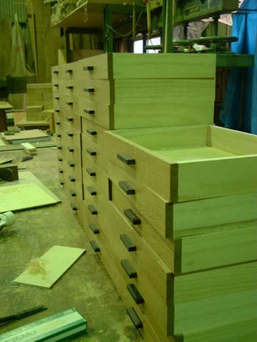 ま、個人的に矢張りはあまり好きではないが余っている材料ということで仕方がない。引き手もチェリー製のオリジナルの引き手をつけたが同材(ウェンジ)、もしくはステン製のほうが合いそうだ。
