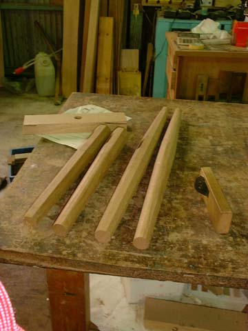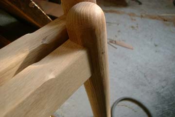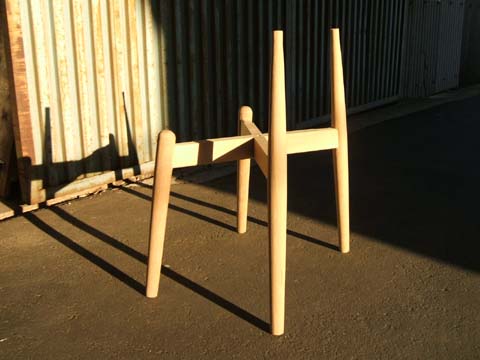 組みあがったとこでホゾ周りの成形。丸脚に仕上げる。