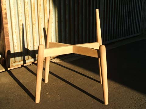 が、背もたれの曲げ木であったり、丸っこい脚であったり、座面下のラミネートの幕板であったり、現在の機械ではどうしても困難なことが多すぎて「完コピ」ではなく、モデュール的なとこはそのままにウチで出来ることで限りなく近づけてみようということにします。
